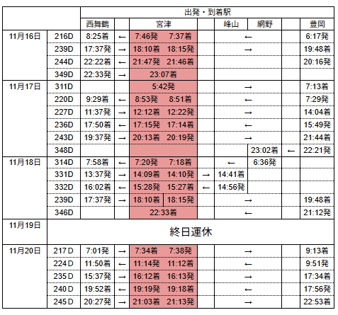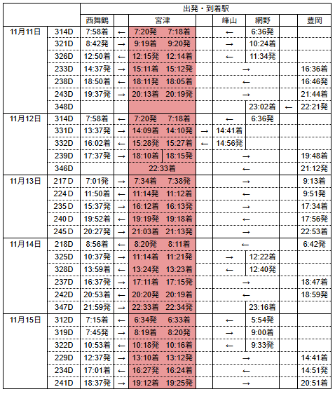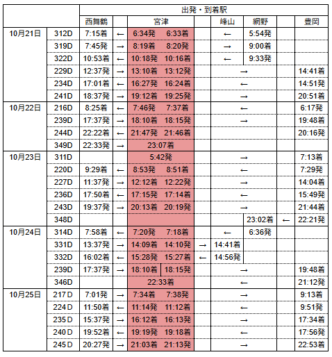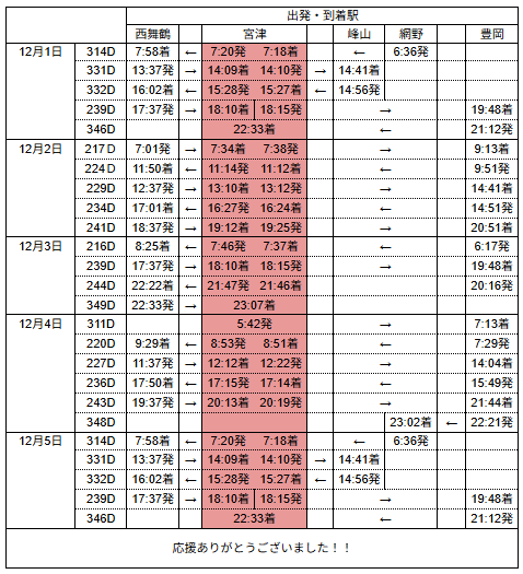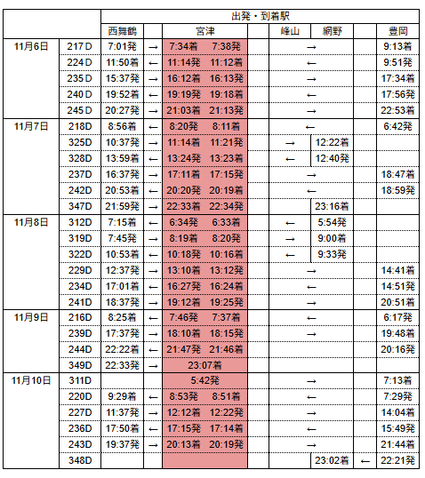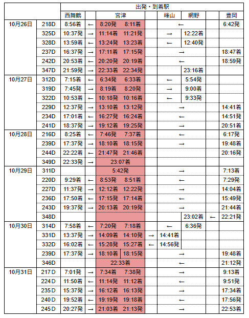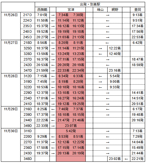 丹後七姫トレインダイヤ